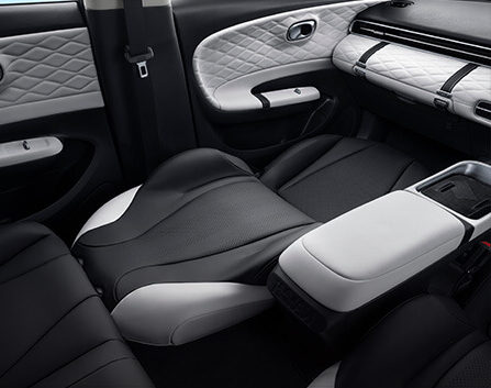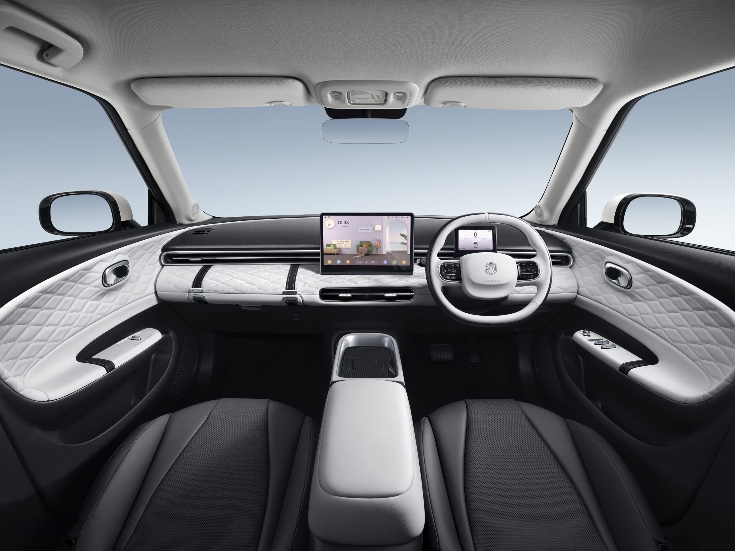The DongFeng BOX boasts a sleek, round exterior that captures attention at first glance. Its modern design includes a closed grille, triangular headlights, and hidden door handles for a seamless look. The frameless doors and suspended roof add to its futuristic appeal, while the round taillights provide a distinctive touch. Available in five vibrant color options and paired with either 16-inch or optional 17-inch rims, the BOX exudes style and sophistication.